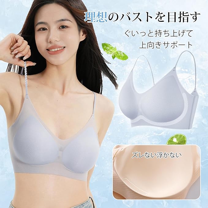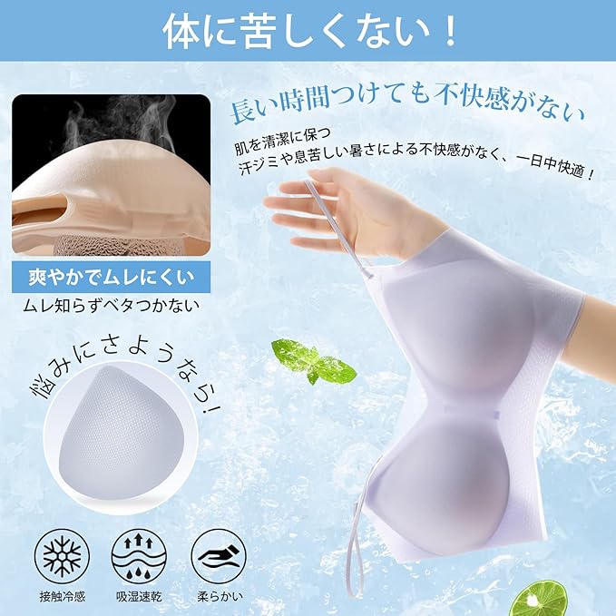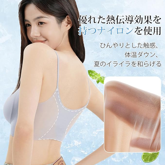[ヴェーミア] シームレス ブラ夏 涼しい 涼感超薄型 氷の絹の 締め付け感がない 雲や霧のような軽さ【冷感ノンワイヤーブラ】接触冷感シームレスでひんやり快適 目立たない細ストラップ 薄手トップスに透けずシルエット美を実現 | oioioichan