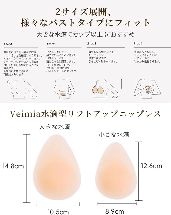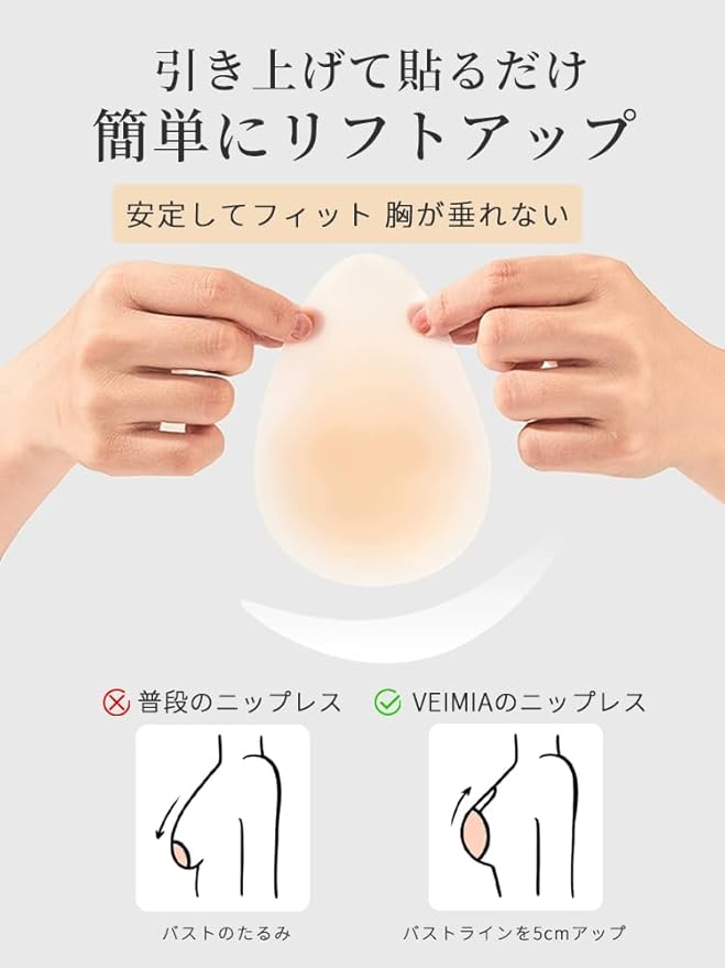 [ヴェーミア] ニップレス 【6枚入りまたは10枚入り】 水滴型胸ステッカー 貼るだけで簡単リフトアップ 厚さ0.2cmで肌になじみ 服にも響きにくい極薄仕様 乳首隠し 水着用 ドレス ドレス用 | oioioichan