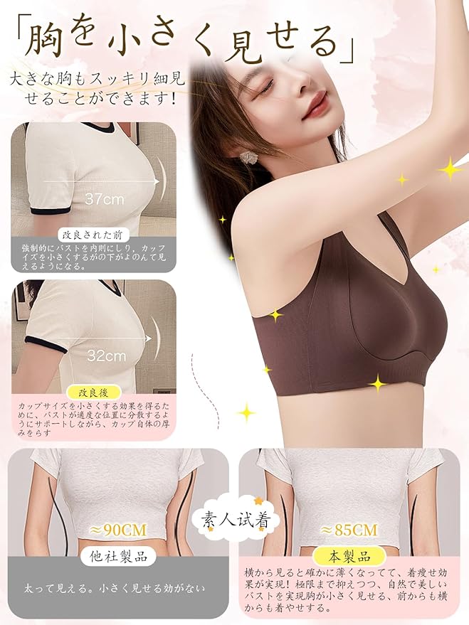 【ノンワイヤーブラで揺れ知らずの安定感】VEIMIAの「胸を小さく見せるブラ」は、トリプルメカニクスの科学的設計により、バストをしっかりと安定させ、運動時の揺れや違和感を軽減。上方向に2.5cmリフトアップする幅広ストラップで、パッケージ感はタイトながらも締め付け感ゼロ。背中や脇の肉をしっかり収納し、長時間着用しても快適です。安定性と快適性を兼ね備えたこのブラは、日々のアクティブな生活をサポートします。