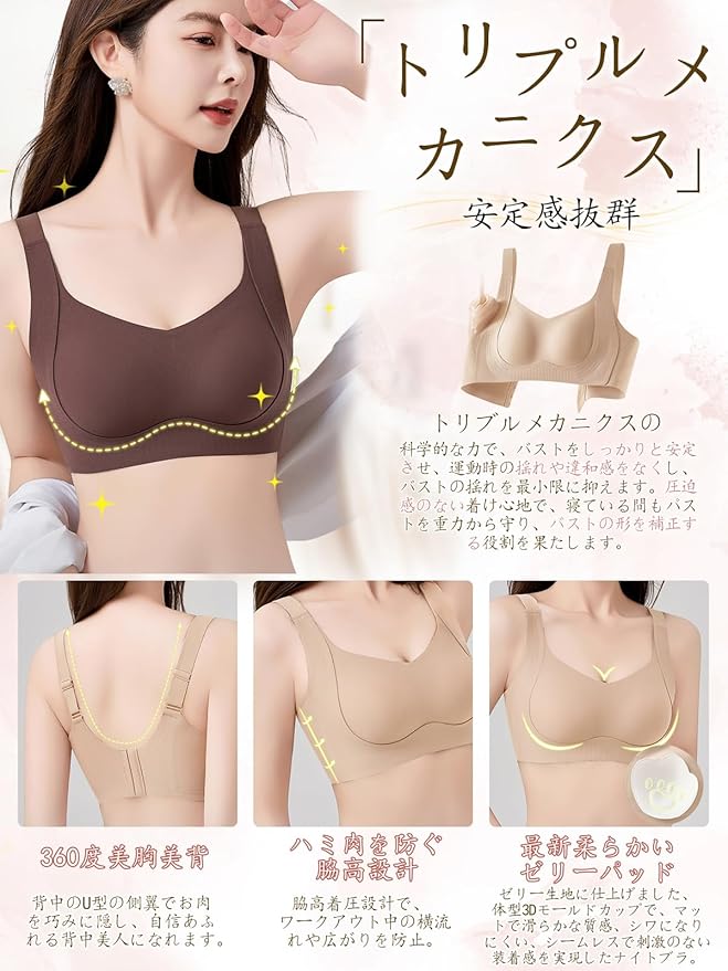 [veimia] ブラジャー ノンワイヤーブラ【超柔軟なゼリー生地・締め付け感ゼロ】シームレス小さく見せるブラ 揺れない 締め付け感ない 脇高設計 美胸美背 通気性 伸縮性 抗菌 肌にやさしい 補正ブラ 垂れ防止 スポーツブラ ナイトブラ 昼夜兼用 | oioioichan