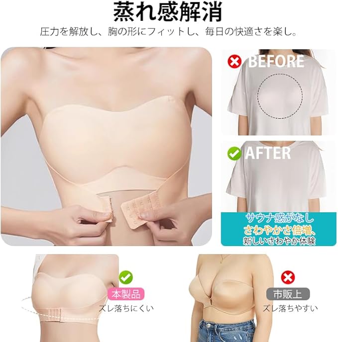 【幅広く着用可能】オープンネックやバックレスのドレス、水着、ブライダル、カジュアルウェア、職場、結婚式、パーティーの集まりなどの日常着に最適です。 バストラインが綺麗シームレスを作り出しストラップレスブラです、上品な印象に見せてくれて、滑らかな肌触りで、一日中着ていたくなるような着心地です!