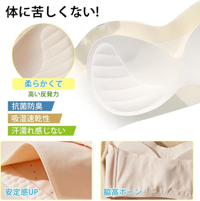 【最強盛れ・寄せブラ】ストラップレスブラ自体がしっかり、クッションもふんわりしているのでつけ心地が良いです。脇高設計で脇と脂肪をしっかり引き締めて引き上げ、谷間をすっきりさせ、輪郭をきれいに保ちます。ブラジャーは胸にしっかりと固定され、上半身をひねったり、腕を上げたり、ジャンプしたりしても落ちず、ズレを完全防止!