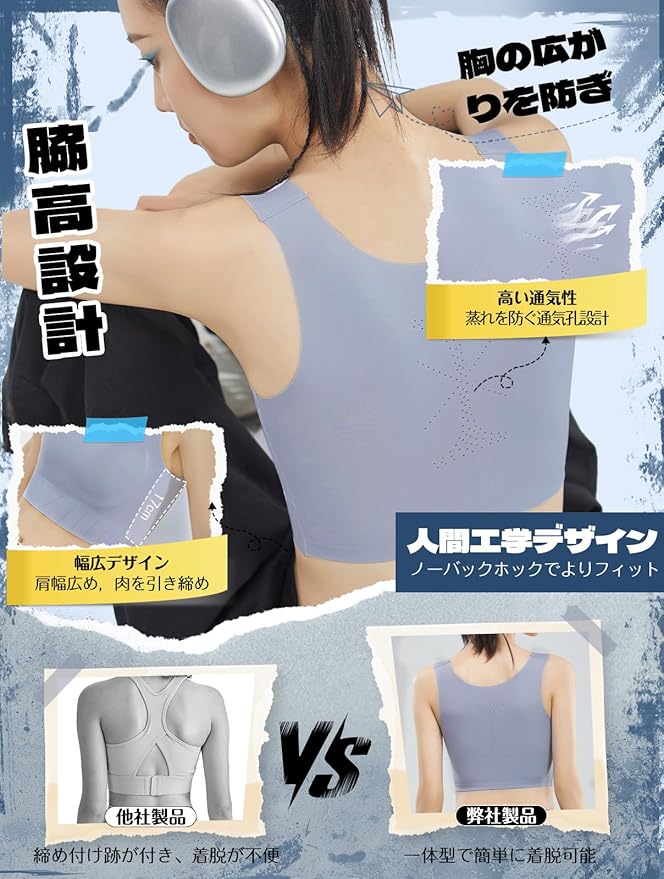 【適切な加圧ナベシャツ】ナベシャツ 胸が小さく見せるブラ全体的に適度な伸縮性があり、日常生活や運動時にもバストの揺れを抑えてくれる和装ブラ 胸つぶし機能で、自信を持った動きをサポートします。ナベシャツちょうどういいストレッチ素材がバストに強く押されたり息苦しくない、生地の伸縮性と面積を広く取って背面着圧で程よく大きい胸を平に潰す。