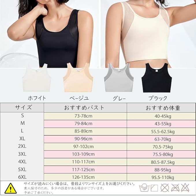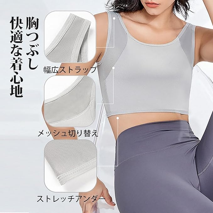 【ジェンダーレスインナー】こちらのサービスブラは、バストを小さく見せたい方、スポーツやスポーツ時に胸の揺れをできるだけ抑えたい方、浴衣や着物を着る方、運動が好きな方向けに設計されています。 胸つぶしシャツがバストを自然に潰す事で美しいシルエットに見せます。
