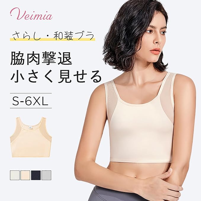 [veimia] 和装ブラ レディース和装ブラジャー プルオーバータイプの胸つぶしブラ 胸を小さく見せる ブラバストを自然に潰す事で美しいシルエットに見せるナベシャツ ナベシャツさらし和装ブラメッシュ素材 ムレにくい 伸縮性あり浴衣ブラジェンダーレス インナー | oioioichan
