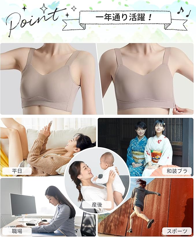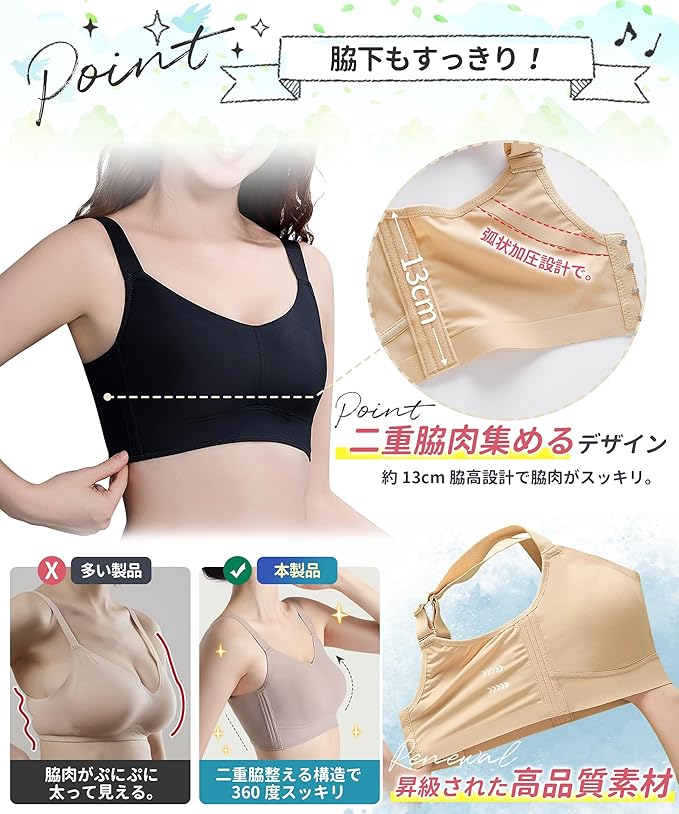 [APIKIE] 胸が小さく見せるブラ 小さく見せるブラ 【二年かかった改良・Dカップも小さく見せる】・揺れ軽減・延長ホック付き・ホールド力 ブラジャー 和装 胸を小さく見せる 脇高 ノーワイヤ シームレス 見痩せ | oioioichan