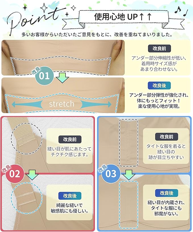 【フィット感小さく見せるブラ】胸が小さく見せるブラは市販上の製品に対する不満点を収集し、それをテスト、分析、改良を重ねた、やっとこの胸が小さく見せるブラが登場!「サイズが小さい」の声が多いので、小さく見せるブラアンダー部分の伸縮性が強化され、体に苦しくない、垂れ防止デザインで適切なホールド力を感じる。楽なストレスフリー。また、延長ホック付きでサイズが大幅に調整でき、24時間使用してもキツく感じない胸が小さく見せるブラ。