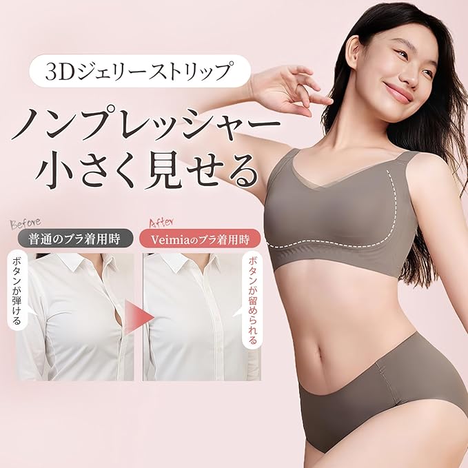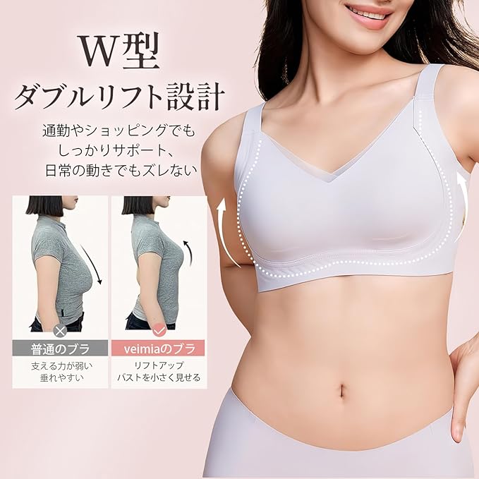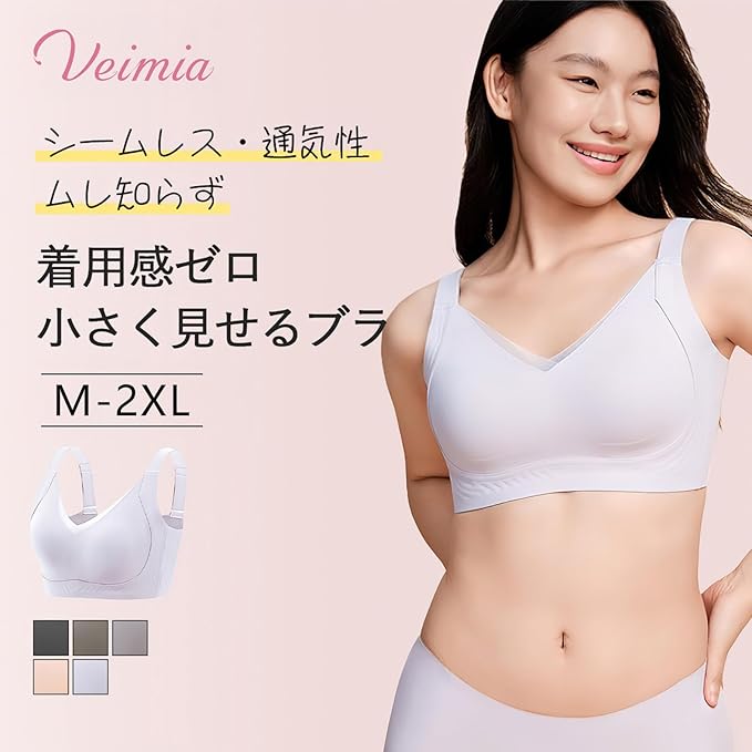 【veimia 自分を愛する瞬間を】洗濯機で洗っても変形しにくい、洗剤残り心配がない。シンプルなデザインでシーンを選ばないシームレス小さく見せるブラ、浴衣ブラジャー、和装ブラ、産後ブラ、スポーツブラ、さらしブラ、ウエディングドレス、ガウン、白シャツ、洋服などでも大きな胸もスマートに魅せ、全体がすっきり。大きい胸の原因太って見える女性方がとてもオスス胸が小さく見せるブラ。