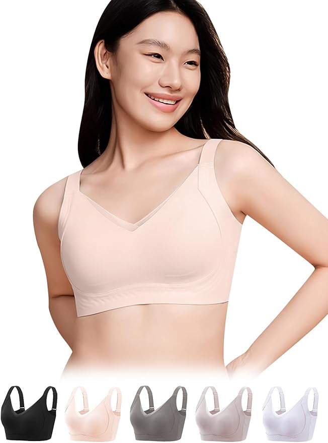 [veimia] 胸が小さく見せるブラ 小さく見せるブラ【クロスメッシュネックデザイン】 ゼリーサポート・揺れ軽減・見痩せ・ホールド力 ブラジャー 垂れ防止補正ブラ 胸を小さく見せるブラ 脇高 ノーワイヤブラ シームレスブラ 大きいサイズ | oioioichan