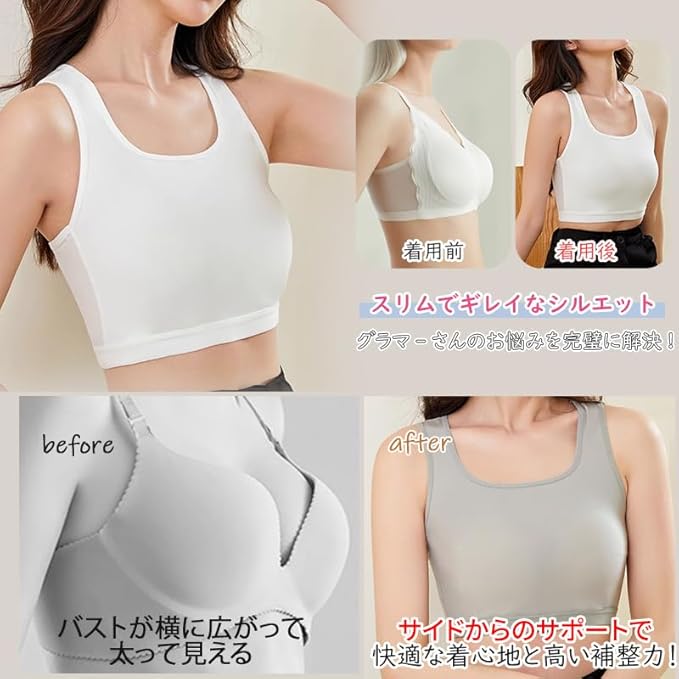 [veimia] 和装ブラ 和装・さらしブラ着物ブラジャー ノンワイヤーブラ 脇高設計 胸つぶし 胸揺れ防止 大きなバストもスッキリコンパクトに 胸を小さく見せるブラ着痩せブラ 男装 ジェンダーレス インナー ハーフタンクトップ型 | oioioichan