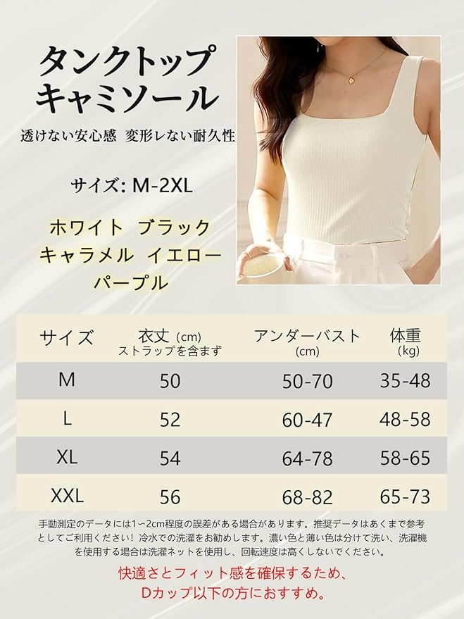【精緻な仕立てと細やかなディテール】女性用キャミソールは丁寧なステッチングで高品質を.し、ほつれにくいです。伸縮性のある裾がアンダーバストをしっかりとサポートし、ずり上がりにくく頻繁な調整の手間を省き、細部から着心地と便利さを向上させます。