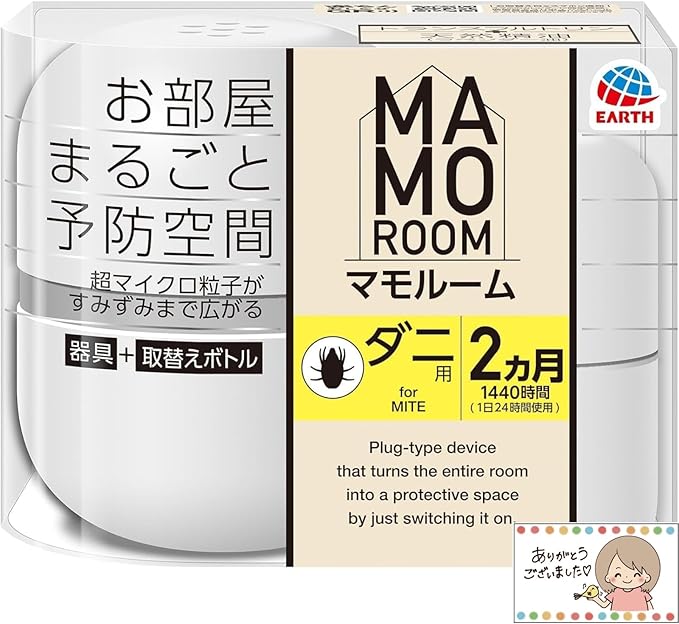去年ダニに散々やられたので、今年は早めに対策。部屋ごとまるっと予防できるそうで、まだ効果の程はわかりませんが期待しています。使い方はとても簡単です。匂いも気になりません。
