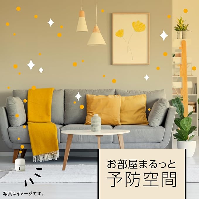 ハウスダスト・花粉を無力化(落下促進、舞い散り防止による効果)して吸入リスクを防ぎます。