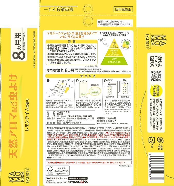 天然由来香料配合の心地よいレモンライムの香りで虫よけ