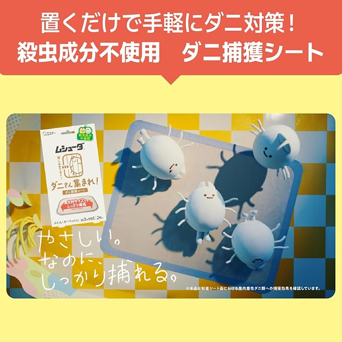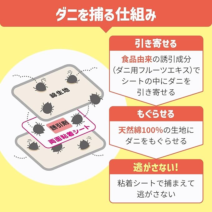 【殺虫成分不使用の大判捕獲シート】成分でダニを誘引します。