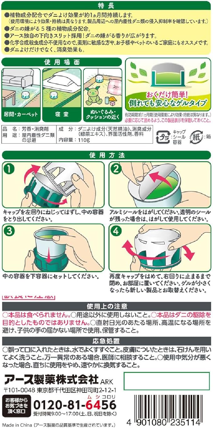 ダニの嫌がる5種の植物成分配合した、置き型のダニ除け剤