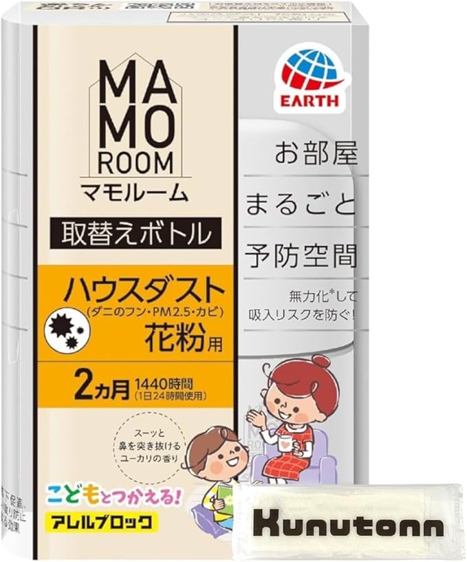 マモルーム ハウスダスト 花粉用 詰め替え 取り替えボトル 2ヵ月用 ユーカリの香り (本取替えボトルは全てのマモルーム器具に使えます。) + Kunutonnオリジナルロゴ入りhおしぼり付 | oioioichan