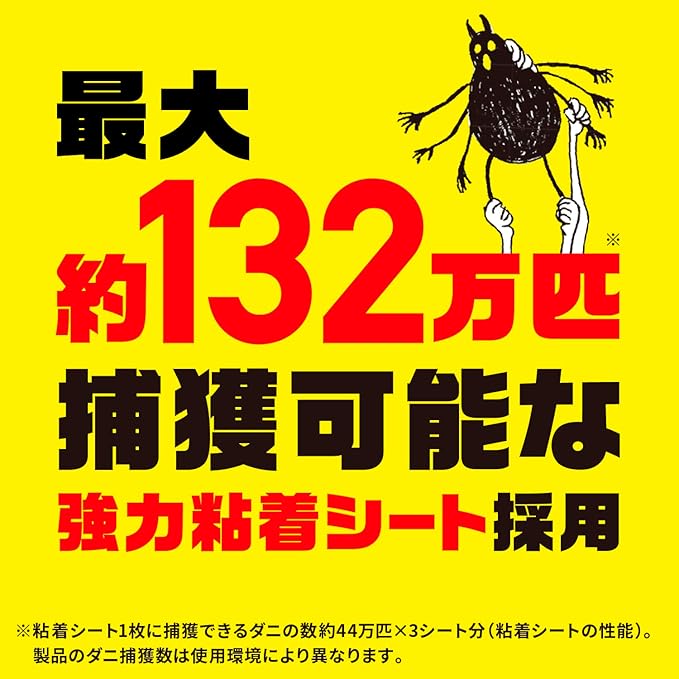 粘着シートがダニをしっかり捕獲。ダニを逃がさず、ハウスダストとして舞い散らせません。