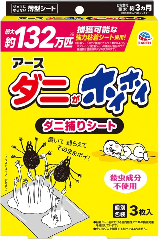 置くだけ簡単、捕獲したダニごと捨てられるダニとりシート。