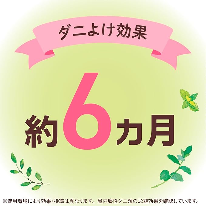 【効果持続期間】約6ヵ月 ※使用環境により効果・持続は異なります。屋内塵性ダニ類の忌避効果を確認しています。