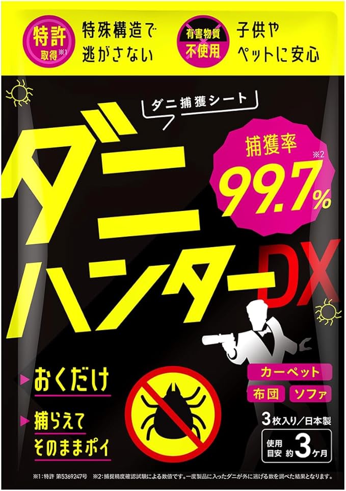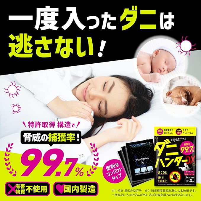 ✅【ダニ取りシート 驚異の閉込率99.7%】特許取得(特許 第5369247号)の特殊構造のダニ取りシートで、ダニを逃しません!調査の結果、99.7%のダニが一度入ったら出ていかないと実証されました。