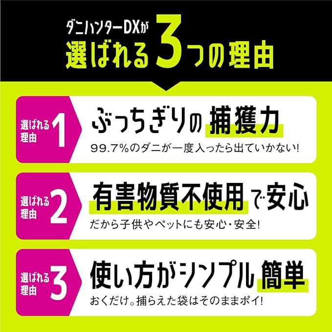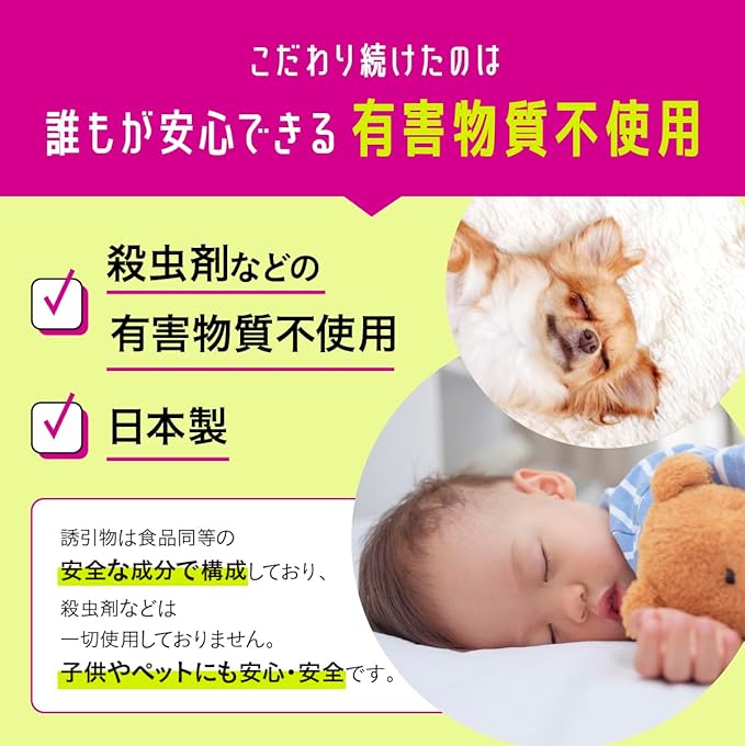 ✅【子どもやペットがいても安心】誘引物は同等の安全な成分で構成しており、殺虫剤などは使用しておりません。有害物質不使用&国内製造でダニ駆除ができるから、赤ちゃんや犬・猫などのペットがいるご家庭でも安心安全です。