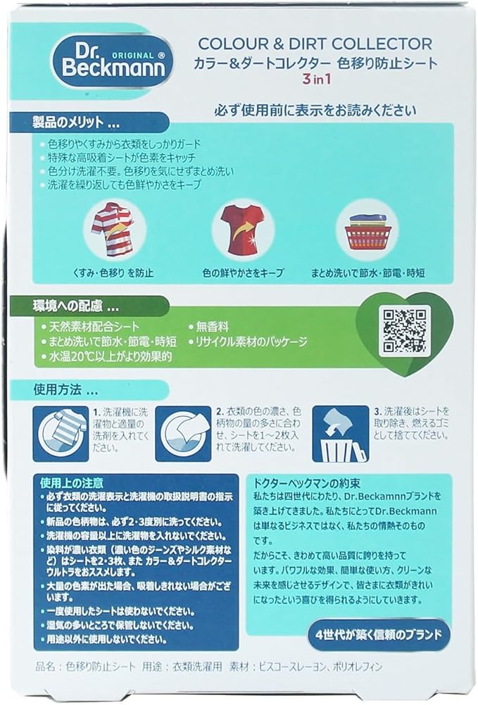 色移り防止効果: 洗濯時に色移りを防ぎ、服や布地の色を守ります