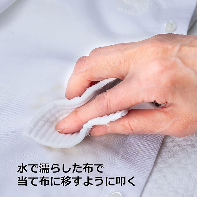 【商品特徴】<落とせるシミ>カレー、バター、パスタソース、トマトソース(ケチャップ)、マヨネーズ、ソース、醤油、ラー油、ドレッシング、焼き肉のたれ、スパイス、マスタード、梅肉、、ラード <使えない素材>和服、皮革製品(スウェードを含む)、アセテート、レーヨン、水で色落ちするもの、水で輪ジミになるもの
