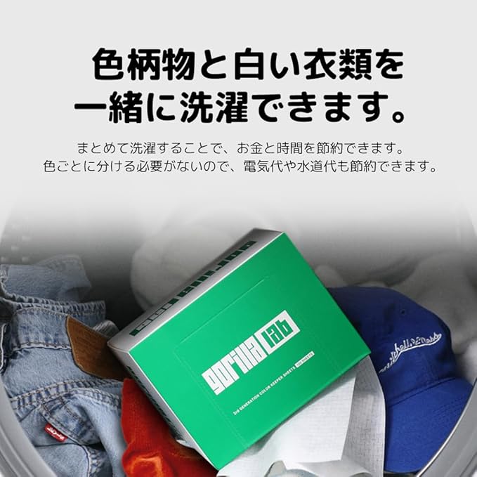 Gorillaラボのカラー吸収ランドリーシートを使用すると、色物と白い服を分けずに一緒に洗濯できるので、水と電気を節約しつつ、洗濯がより簡単になります。このシートは染料のにじみを吸収し、衣服の元の色を維持して、鮮やかで明るい状態に保ちます。