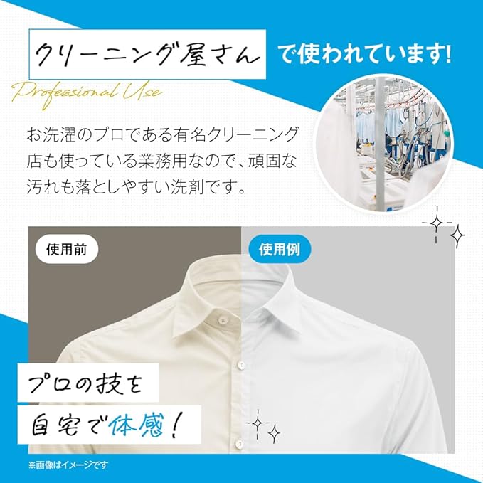 【プロの技を自宅で体感】お洗濯のプロであるクリーニング店でも使っている業務用だから、頑固な汚れもスッキリ!お洗濯の悩みを減らして、毎日の洗濯をより簡単に、快適に。