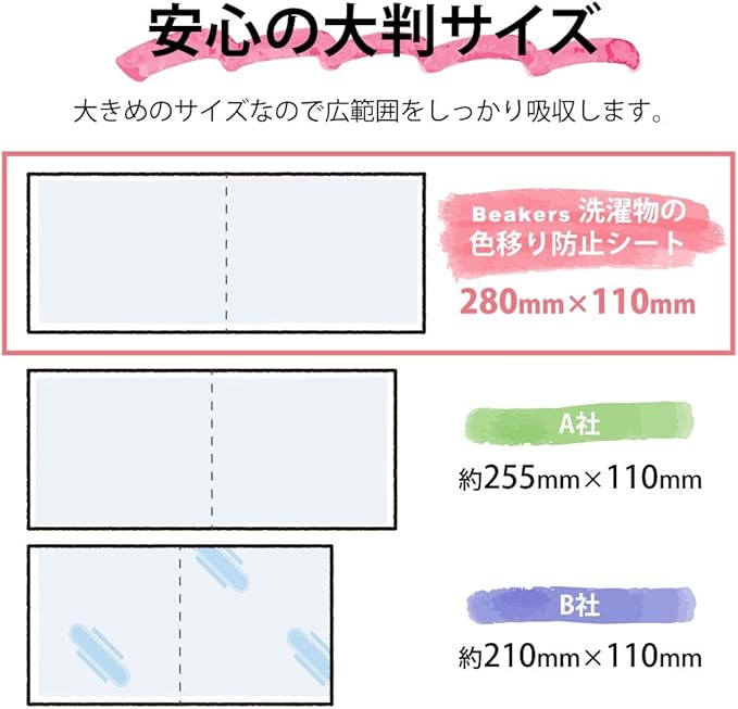 【 安心の大判サイズ 】 280mm 110mm 大きめのサイズなので広範囲をしっかり吸収します。