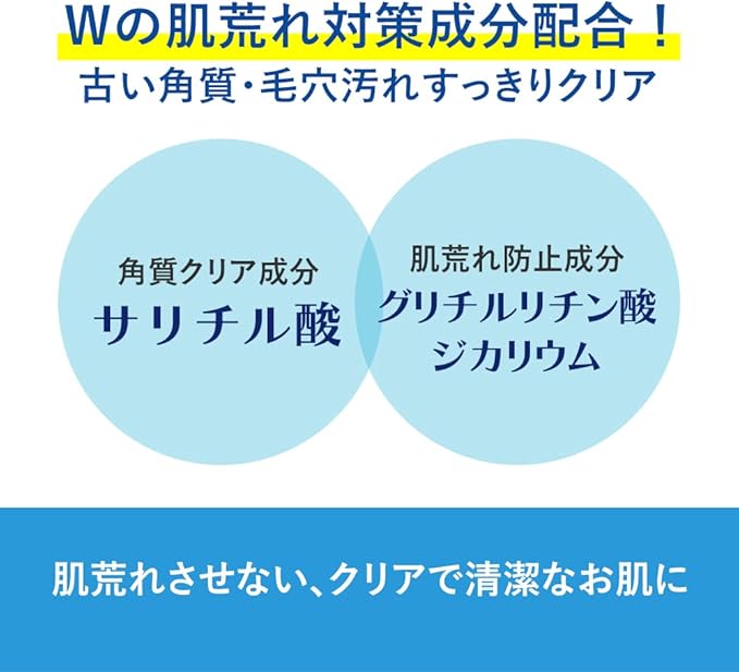 ✅Wの肌あれ対策成分配合!角質クリア成分サリチル酸とグリチルリチン酸ジカリウム配合で肌荒れさせない、クリアで清潔なお肌に。
