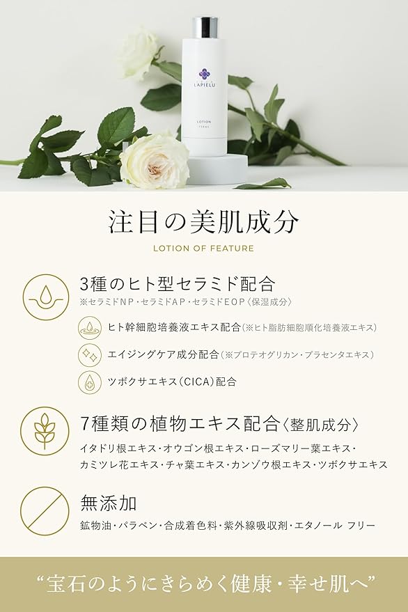 【ヒト幹細胞化粧水】ラピエル ローション 美水 美顔水 保湿 導入化粧水 エイジングケア セラミド さらさら しっとり 高保湿 EGF プロテオグリカン プラセンタ CICA 日本製 大容量 毛穴 くすみ 乾燥肌 敏感肌 150ml LAPIELU | oioioichan