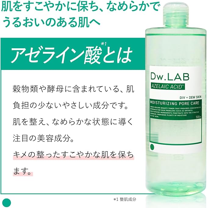 【Dw.LAB アンプルトナー】穀類や酵母に含まれている、肌への負担が少ない成分と、皮脂バランスを整え、毛穴つまり・肌荒れを防ぐ注目の美容が成分配合された500mlとたっぷり大容量のトナーです!
