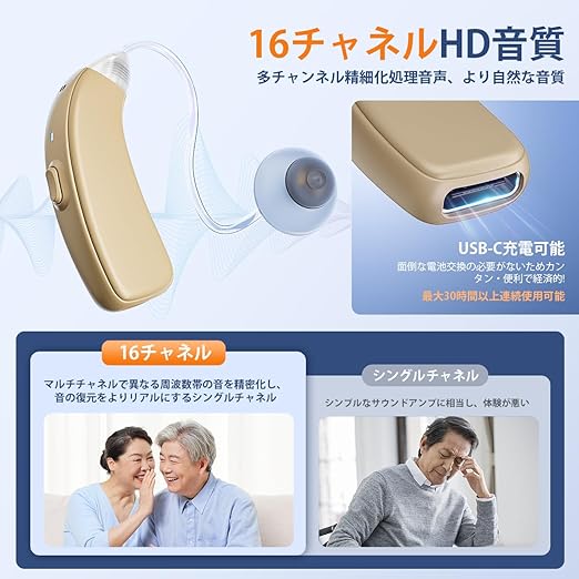 【充電式&長時間稼働】この集音器はUSB充電式の仕様に仕上がり、繰り返して電池交換の手間を省け、充電ポートに 差し込むだけで充電できます。1回の充電で長時間使用できます。公園の散歩やスーパーでのお買い物など、安心してお出かけいただけます。日常のニーズに最適な組み合わせです。