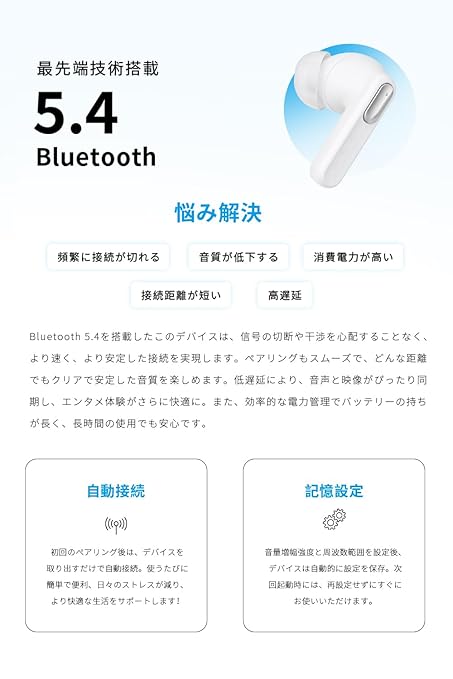 【1台2役高性能集音器と最先端Bluetooth技術の融合】当社の革新的なイヤホンは、集音器とBluetooth機能を1台に完璧に統合しており、多様なオーディオニーズに対応します。集音器としては、最新のデジタル信号処理技術を採用しています。この高度なチップは、あなたが聞きたい音を一つ一つ正確に認識し、クリアで大音量な音を出力します。人の声を360度全方位から捉え、ノイズを徹底的に除去しながら、相手の言葉を100%忠実に認識し、極めて自然な聴感を実現しました。また、この製品はBluetooth5.4を搭載しており、接続の安定性と高速性が大幅に向上しています。あなたのスマートフォンやタブレットのBluetoothをオンにし、「T15」という名前で検索してクリックするだけで、5秒以内に接続が完了します。接続成功後、音楽再生、通話、ビデオ視聴など、あらゆるオーディオコンテンツに対応しています。通話時には、応答や拒否の操作も簡単に行え、便利な使い勝手を提供します。