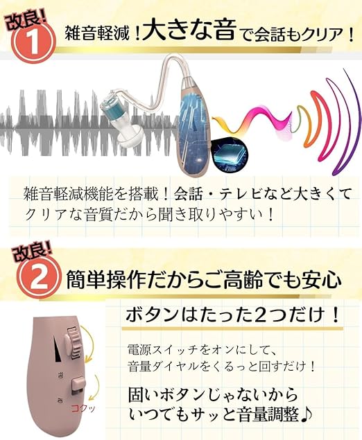 ✅集音器のMIMIKKO(みみっこ)。はじめて集音器をお使いのご高齢者の方にお勧めの「シンプルコンパクト」。軽量でかつコンパクトなボディ、また操作が簡単で初めて集音器をお使いの方に喜ばれています。耳に掛けるワイヤーを補強改良済み!
