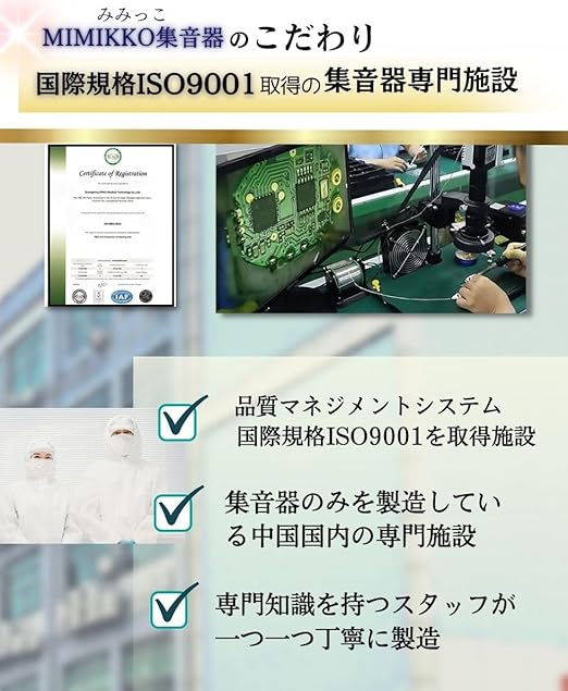 ✅MIMIKKOは徹底管理された「集音器専門製造施設」で専門スタッフの手でひとうひとつ丁寧に作られています。また在庫は全て日本にあるので即日発送。日本のブランドなので「届かない・買ったのに連絡がつかない」などの心配はありません。MIMIKKO専門チャンネルでは動画での商品説明も充実!「使い方がわからない」「高齢者へ渡すからもっとわかりやすく」というお客様にもご好評いただいております。