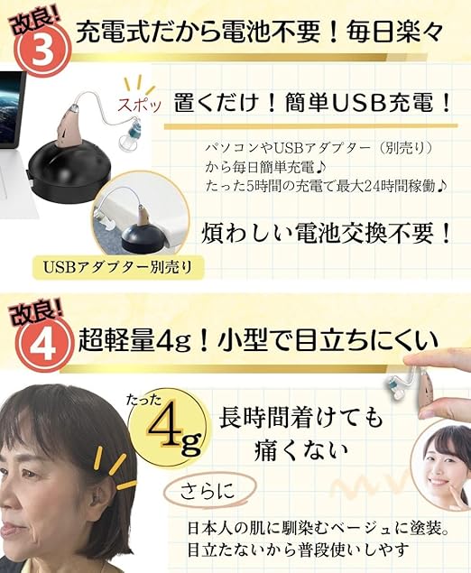 ✅MIMIKKO集音器は高齢者に嬉しい便利な充電式。だから小さくて面倒な電池交換は不要です。たった5時間ほどの充電で20~24時間稼働。家での使用はもちろん、外出や旅行先でも大活躍。