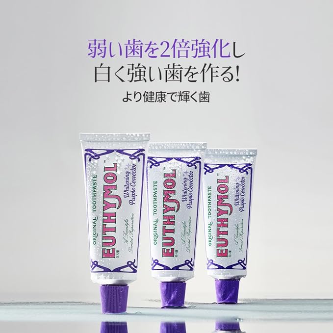 【EUTHYMOLパープルコレクター歯磨き粉】「黄色の補色は紫色」だから、パープルコレクティングテクノロジーを活用した歯磨き粉で歯のステインケアをサポート!歯の着色をケアはもちろん、気になる口の臭いまでケアできるさっぱりとした感じの歯磨き粉です。