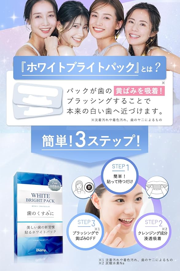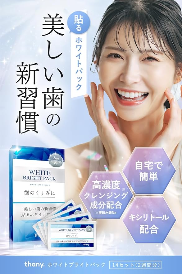 【美しい歯を目指す新習慣】thany. ホワイトブライトパックで、自宅で簡単に輝く白い歯へ。高濃度クレンジング成分とキシリトール配合。