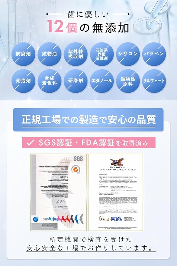 【正規工場での製造】SGS認証とFDA認証を取得した工場で製造。徹底した品質管理のもと、安全性の高い製品をお届けします。