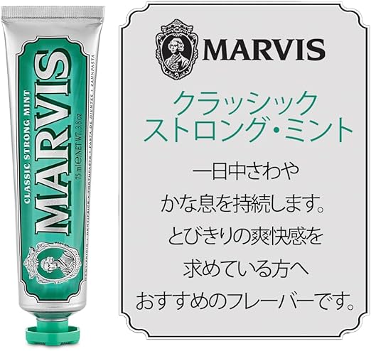 MARVIS(マービス) クラッシック ストロング・ミント 歯磨き粉 とびっきりの爽快感ペパーミント味 オーラルケア イタリア製 75ml