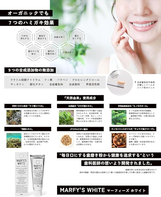 【国産オーガニック歯磨き粉】MARFY'S WHITE(マーフィーズホワイト) 歯磨き粉 オーガニック 無添加 ホワイトニング 口臭ケア 90g 日本製 発泡剤不使用 天然由来成分配合 | oioioichan