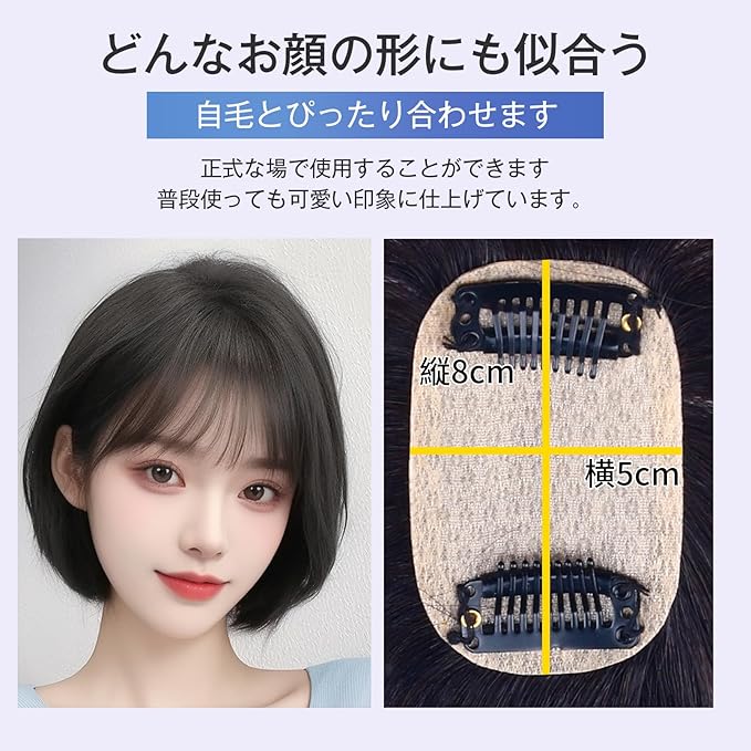 装着簡単:二つのピンで自毛にぱちんと止めるだけ、しっかり固定できます。気になる部分を簡単に気軽にカバーでき、顔周りに、ボリューム感up!用も普通用も両方とも対応できます。