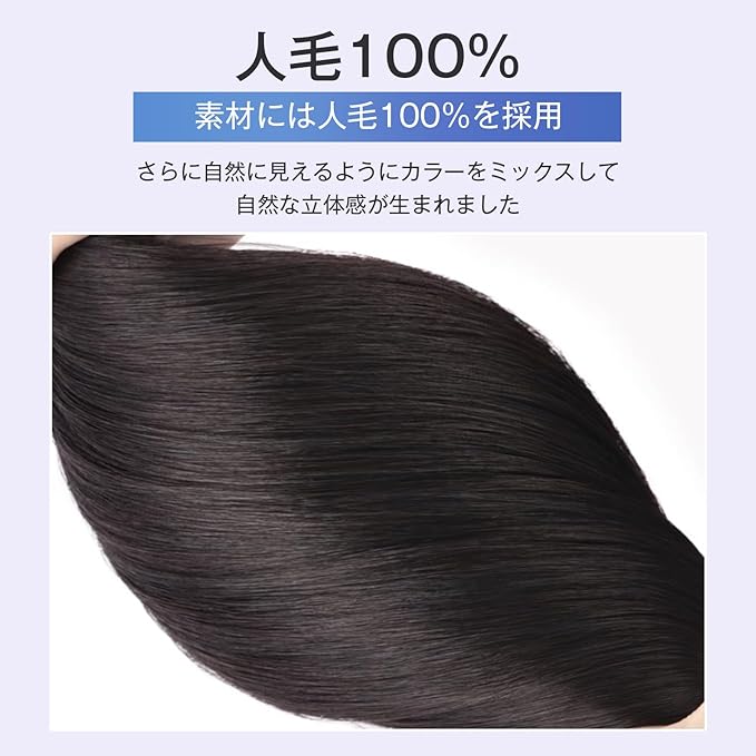 自然な仕上がり:光沢、手触り、質感が非常にリアルで、自然な仕上がりを実現します。ドライヤーやパーマなどのヘアスタイリングに対応していて、お好きなアレンジやスタイルに自由に変化させることができます。