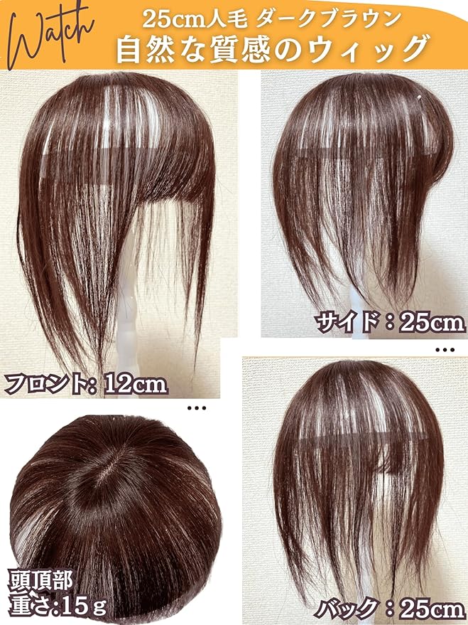 ✅【超軽量】 ③サイズ:ストレートミディアム フロント12cm バック 25cm、サイド 25cm ④重さ:約 15.8g ⑤カラー:ダークブラウン (赤みのあるブラウン) ⑥対象: レディース 女性 用 プレゼント 中高年 ⑦用途: うぃっぐ ウィッグ かつら 部分ウィッグ