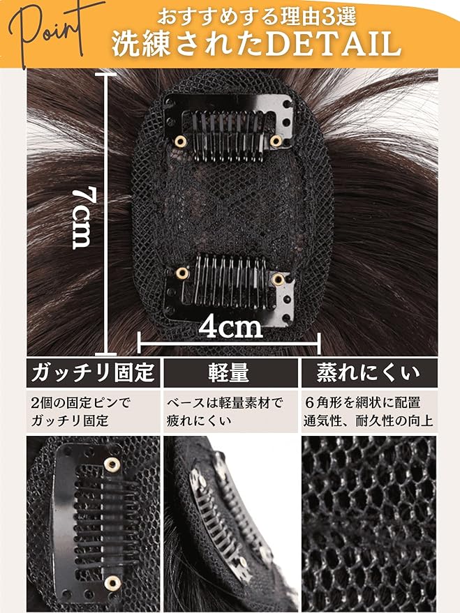 ✅【空気透過性UP】⑧ベース: 強力固定ピンは2つで、より自然なつけ心地を再現致しました。ソフトネットを用いている為、あらゆる頭の形にフィットします。またソフトネットは空気透過性がとてもよく、快適、通気性、蒸し暑くない等の利点があります。