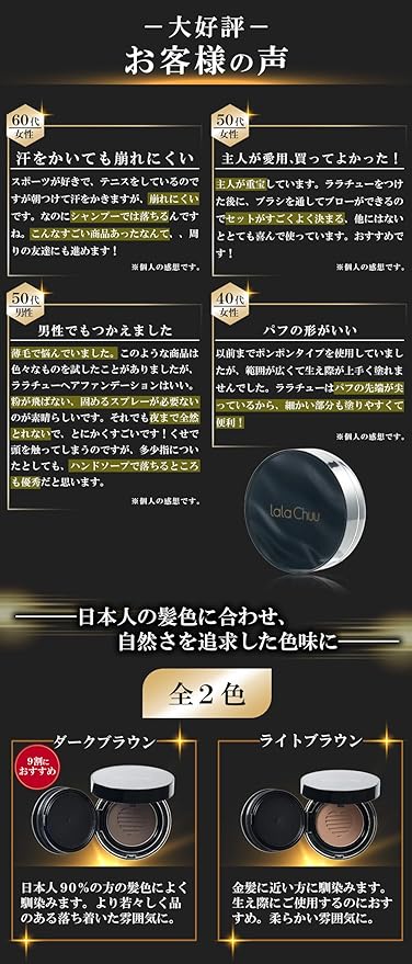 【正規品】ララチュー ヘアファンデーション プレミアムN レフィル ダークブラウン ライトブラウン lalachuu 白髪隠し ボリュームアップ 薄毛隠し 増毛 抜け毛 円形脱毛症 生え際 (ダークブラウン, 9グラム) | oioioichan