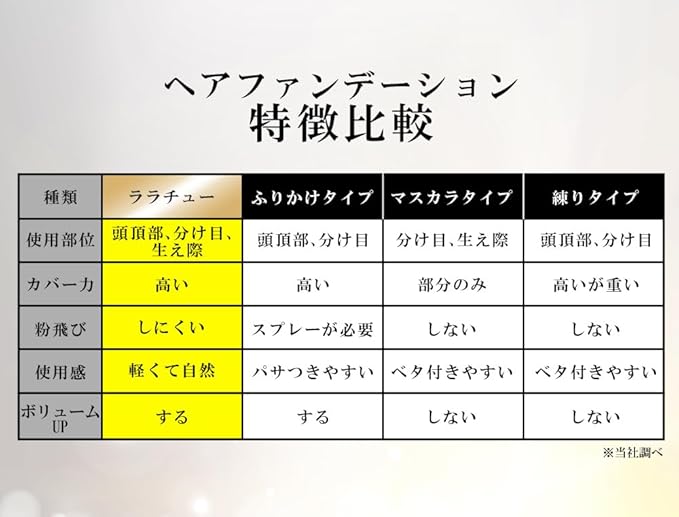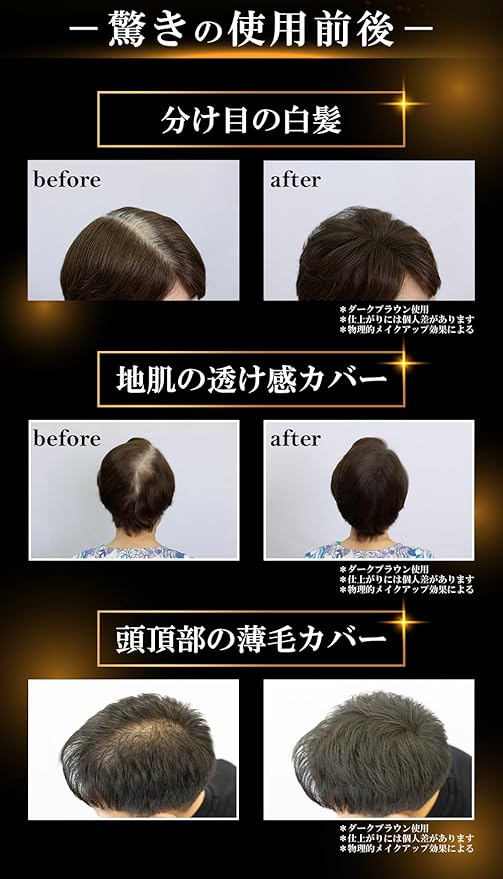 商品特長 白髪、薄毛、増毛が気になる方へ、ポンポンとつけるだけ!スプレーで固めたり、粉飛びも少なく男女兼用の使いやすいヘアファンデーションです。